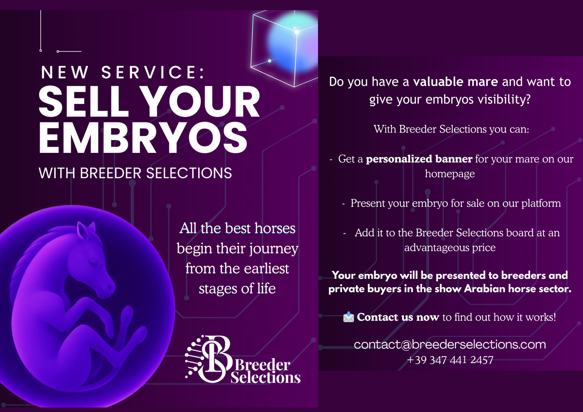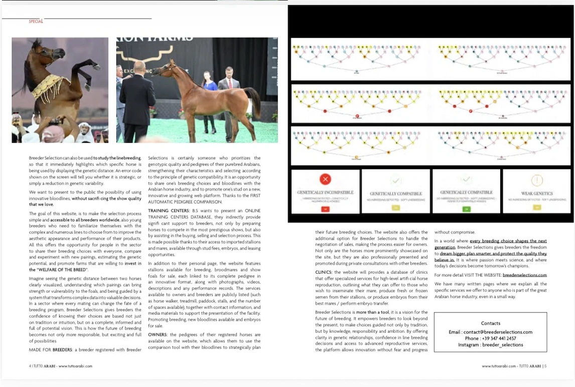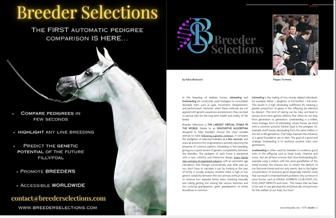 Testing the genetic compatibility between two equine pedigrees means analyzing how their bloodlines and genetic make-up relate to each other, in order to understand their degree of kinship, the presence of shared genes, and the potential transmission of desirable or undesirable traits to their offspring. It is a process that connects breeding genealogy...